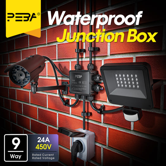 PEBA® Abzweigdose IP68, Erdkabel Klemmdose Verbindungsdose, Übergroße 9 Wege Junction Box, Klemmkasten, Wasserdichte Kabelverbinder, Aufputz Verteilerdose Außen Wasserdicht, für 4-14 mm Kabel, Schwarz