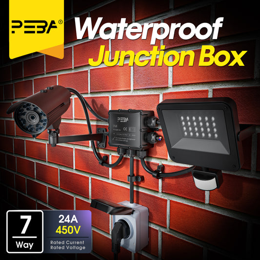 PEBA® Wasserdicht Abzweigdose Erdkabel Kabelverbinder IP68 Verteilerdose steckdose aussen verteiler Ø4mm-14mm kabel für garten outdoor verbinder box 7-Wege Schwarz