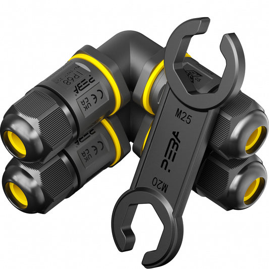 PEBA® Abzweigdosen Wasserdicht Verteilerdose IP68 Klemmdose Wasserdichte Kabelverbinder für Aussen Größere 3-Wege Kabelverschraubung Ø 4mm-14mm Schwarz T-Form