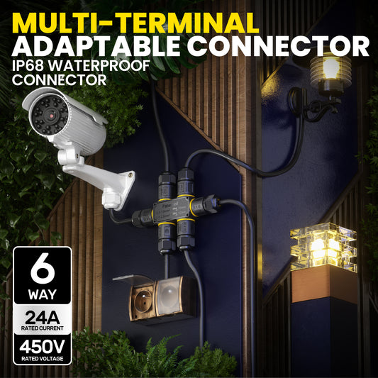 PEBA® Wasserdicht Abzweigdose Erdkabel Kabelverbinder IP68 Verteilerdose steckdose aussen verteiler Ø4mm-14mm kabel für garten outdoor verbinder box 6-Wege Schwarz