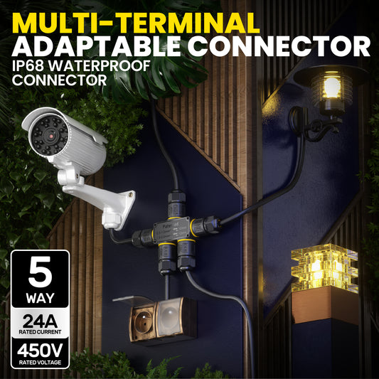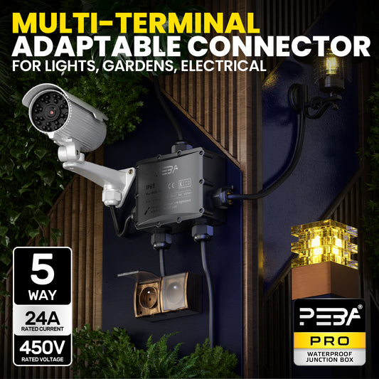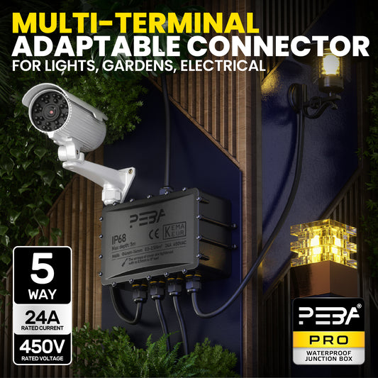 PEBA® Kabelverbinder Wasserdicht IP68 Verbindungsbox Verbindungsmuffe 5-polig für Ø4-14mm Kabeldurchmesser, Verteilerdose außen, 5-Leiter, Verbindungsklemme mit Hebel für Outdoor, Abzweigdose