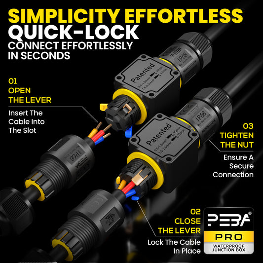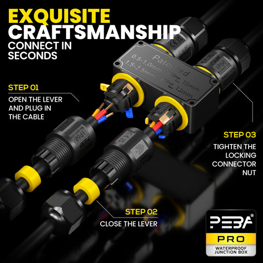 PEBA® Kabelverbinder Wasserdicht IP68 Verbindungsbox Verbindungsmuffe 3-polig für Ø4-12mm Kabeldurchmesser, Verteilerdose außen, 3-Leiter, Verbindungsklemme mit Hebel für Outdoor, Abzweigdose