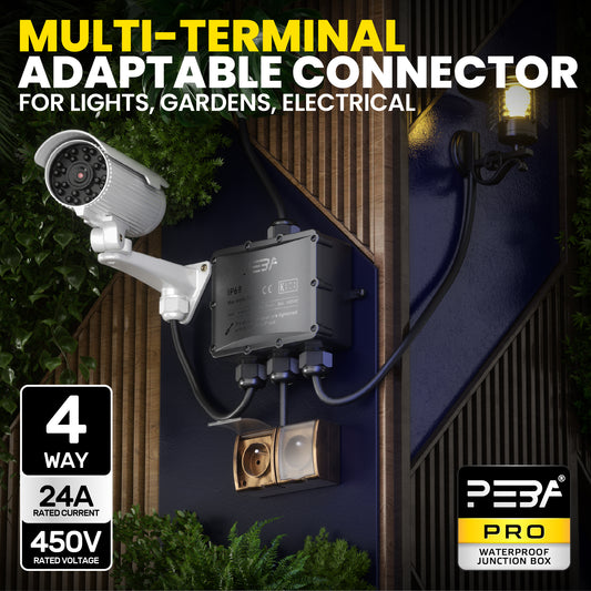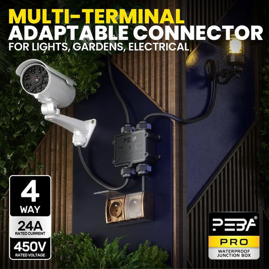 PEBA® Wasserdicht Abzweigdose Erdkabel Kabelverbinder IP68 Verteilerdose steckdose aussen verteiler Ø4mm-14mm kabel für garten outdoor verbinder box 4-Wege Schwarz