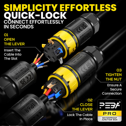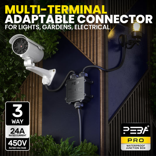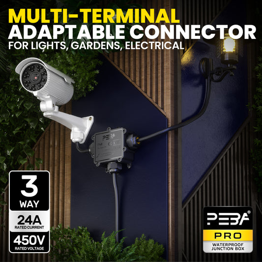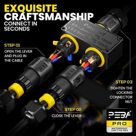 PEBA® Kabelverbinder Wasserdicht IP68 Verbindungsbox Verbindungsmuffe 3-polig für Ø4-12mm Kabeldurchmesser, Verteilerdose außen, 3-Leiter, Verbindungsklemme mit Hebel für Outdoor, Abzweigdose