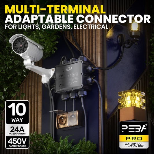 PEBA® Wasserdicht Abzweigdose Erdkabel Kabelverbinder IP68 Verteilerdose steckdose aussen verteiler Ø4mm-14mm kabel für garten outdoor verbinder box 10-Wege Schwarz