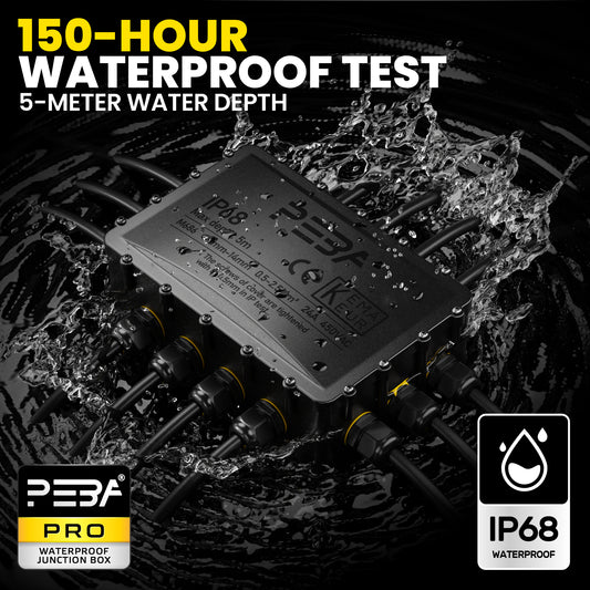 PEBA® Abzweigdose IP68, Abzweigkasten, Wasserdichte Kabelverbinder, Aufputz Verteilerdose Außen Wasserdicht 5-Wege für Ø4-14mm Kabeldurchmesser Anschlussdose, Klemmkasten, Abzweigdose schwarz