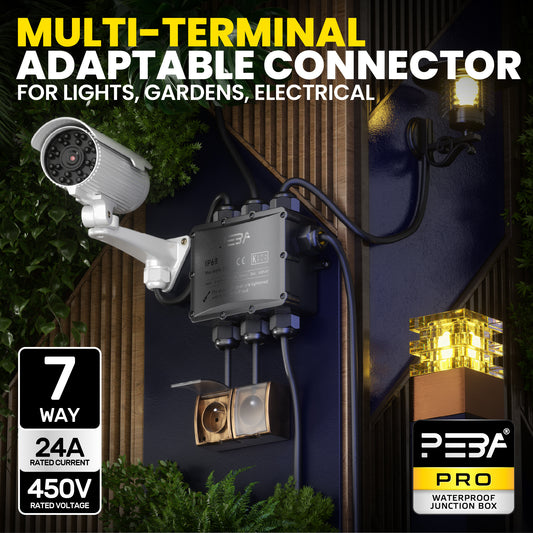 PEBA® Wasserdicht Abzweigdose Erdkabel Kabelverbinder IP68 Verteilerdose steckdose aussen verteiler Ø4mm-14mm kabel für garten outdoor verbinder box 7-Wege Schwarz