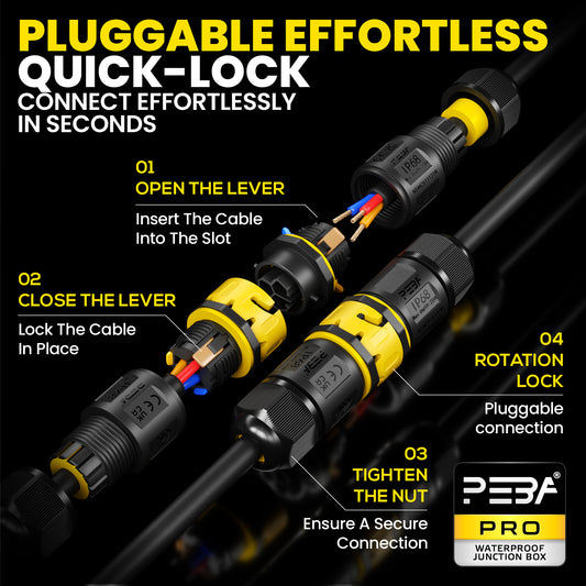 PEBA Kabelverbinder Wasserdicht 3 polig IP68 Steckbarer Wasserdichte Kabelverbinder, Kabelschnellverbinder mit Stecker und Buchse für 4-12mm, Verbindungsklemme mit Hebel, Schwarz
