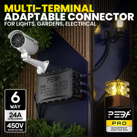 PEBA® Wasserdicht Abzweigdose Erdkabel Kabelverbinder IP68 Verteilerdose steckdose aussen verteiler Ø4mm-14mm kabel für garten outdoor verbinder box 6-Wege Schwarz