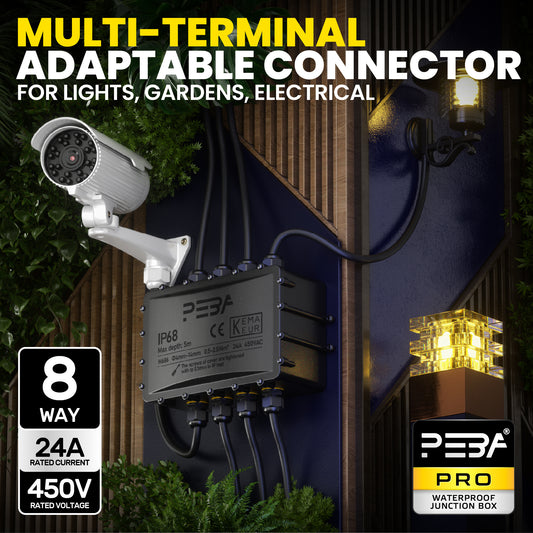 PEBA® Wasserdicht Abzweigdose Erdkabel Kabelverbinder IP68 Verteilerdose steckdose aussen verteiler Ø4mm-14mm kabel für garten outdoor verbinder box 8-Wege Schwarz
