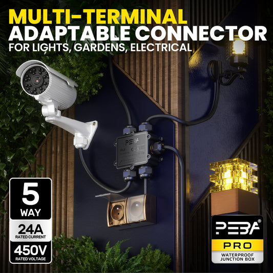 PEBA® Abzweigdose IP68, Erdkabel Klemmdose Verbindungsdose, 5 Wege Junction Box, Klemmkasten, Wasserdichte Kabelverbinder,Aufputz Verteilerdose Außen Wasserdicht,für 4-14mm Kabel,Abzweigkasten schwarz