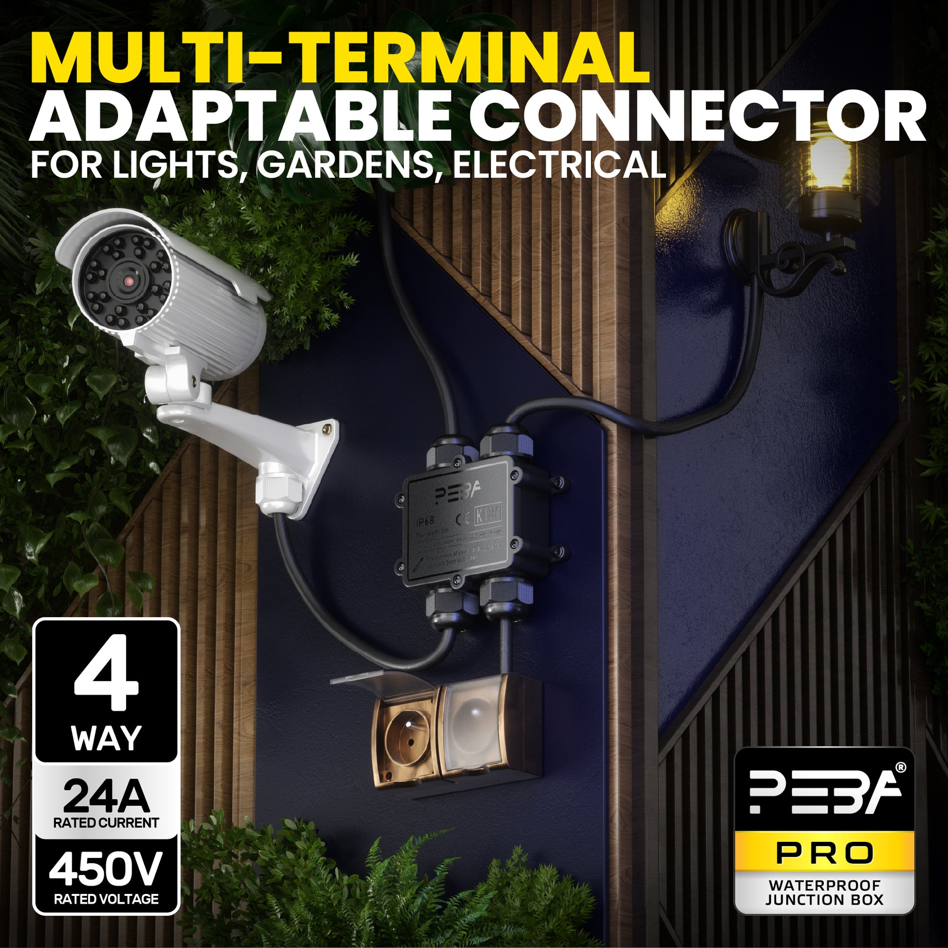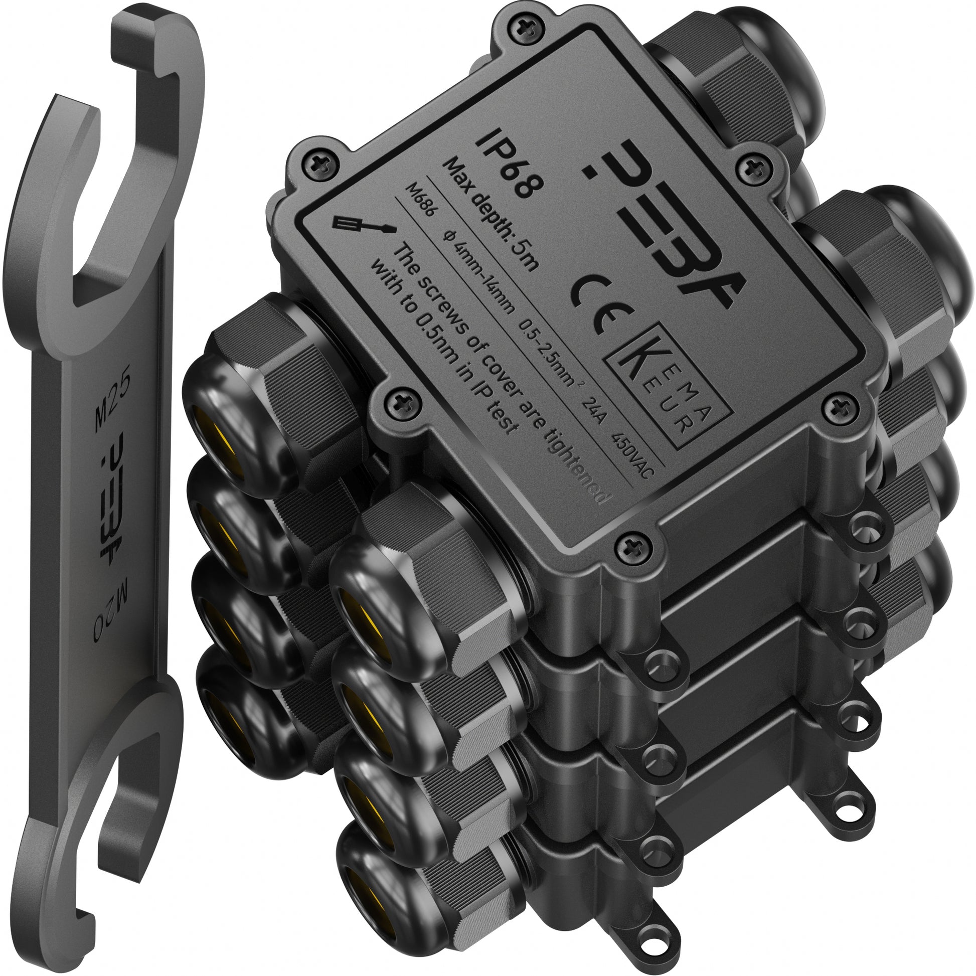 PEBA® Abzweigdose IP68 Wasserdicht Kabelverbinder Aussen 4-Wege-Verbindungsdose Erdkabel Schwarz Elektrischer Außenverteilerdose,Kabelverschraubung für Ø 4mm-14mm
