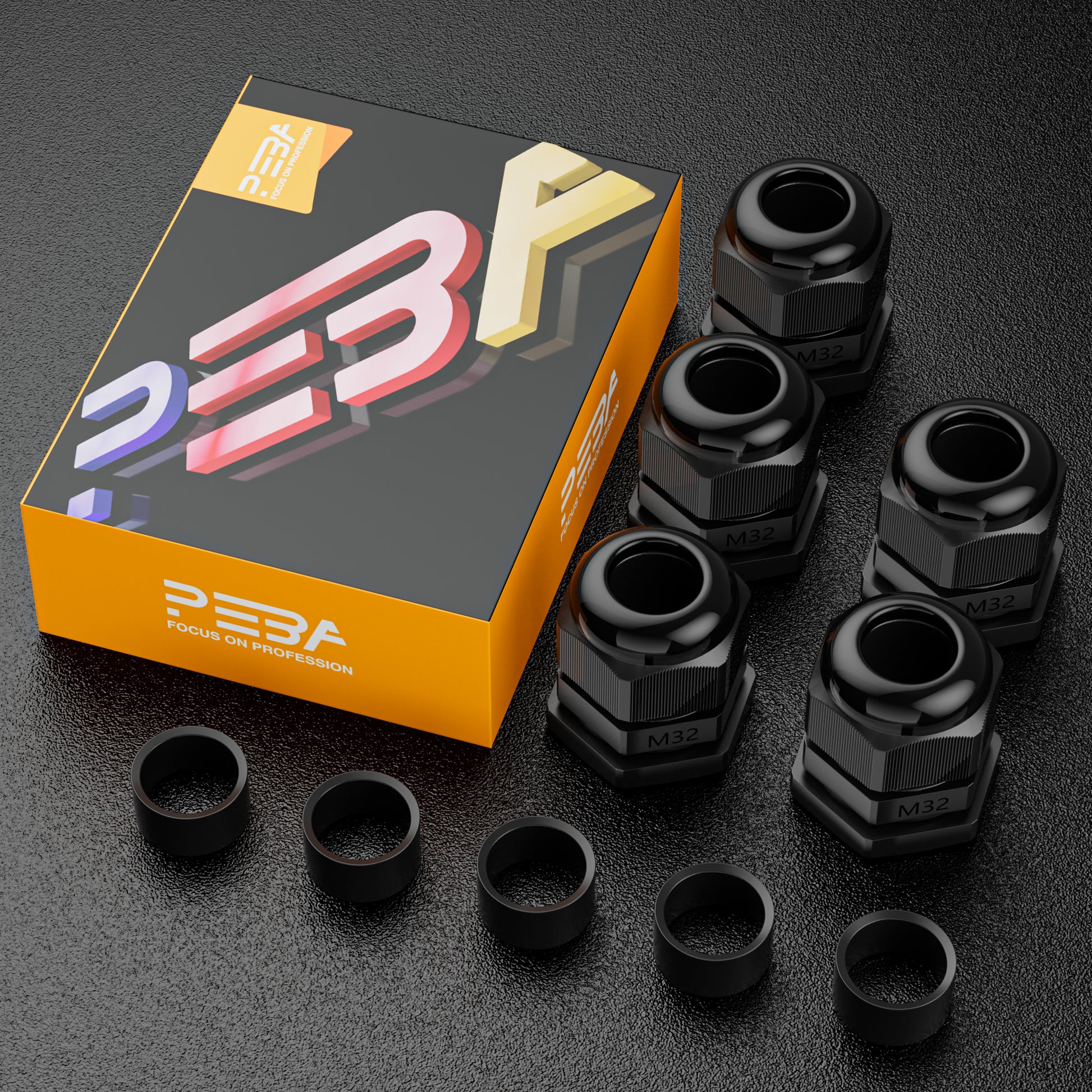 PEBA® Kabelverschraubung M32 x 1,5 Wasserdicht Kabeldurchführung,IP68 Kabelverschraubungen Set mit Gegenmutter Kunststoff,Kabeleinführung Verstellbare für 16-21mm,Gummitülle Kabeldurchführung Schwarz