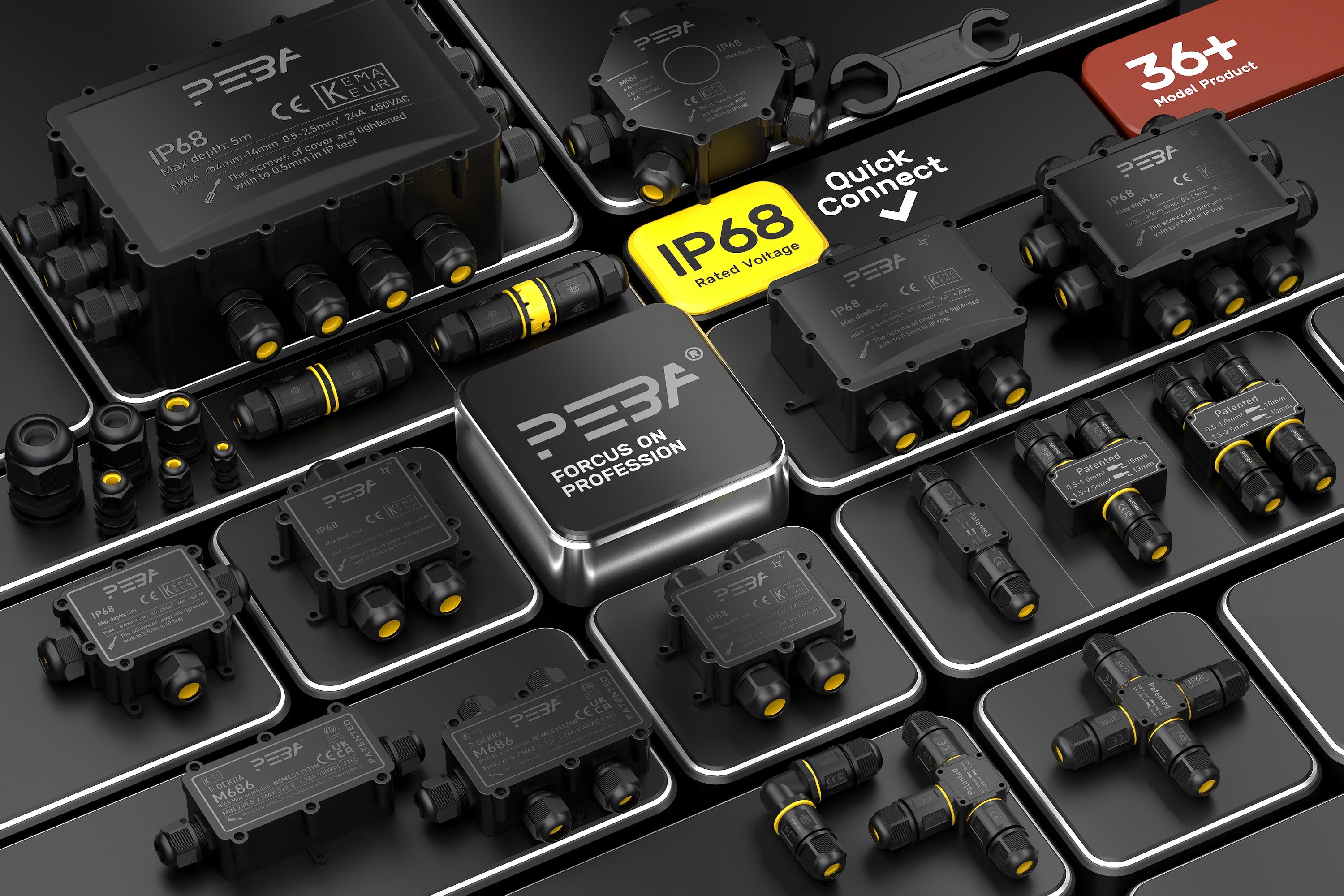 PEBA Kabelverbinder Wasserdicht 3 polig, 6-Wege IP68 Wasserdichte Kabelverbinder 4-12 mm Kabeldurchmesser, Verteilerdose außen, Verbindungsklemme mit Hebel für Outdoor, Abzweigdose Schwarz