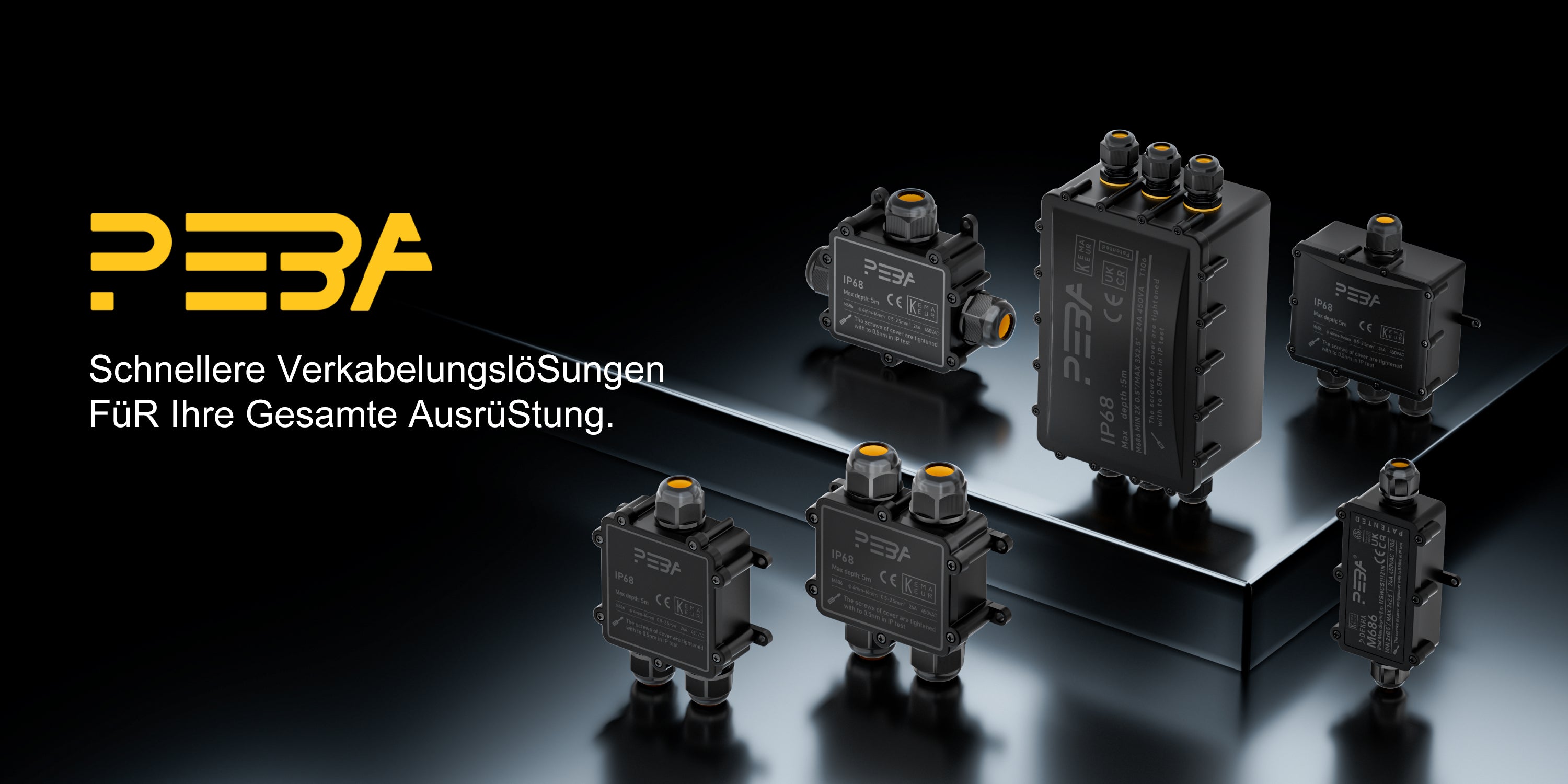 Boîte de jonction PEBA®, boîte à bornes pour câbles souterrains, boîte de jonction 2 voies, boîte de distribution étanche IP68, connecteur de câble extérieur, boîte de distribution électrique extérieure, diamètre du câble Ø 4mm-12mm, noir