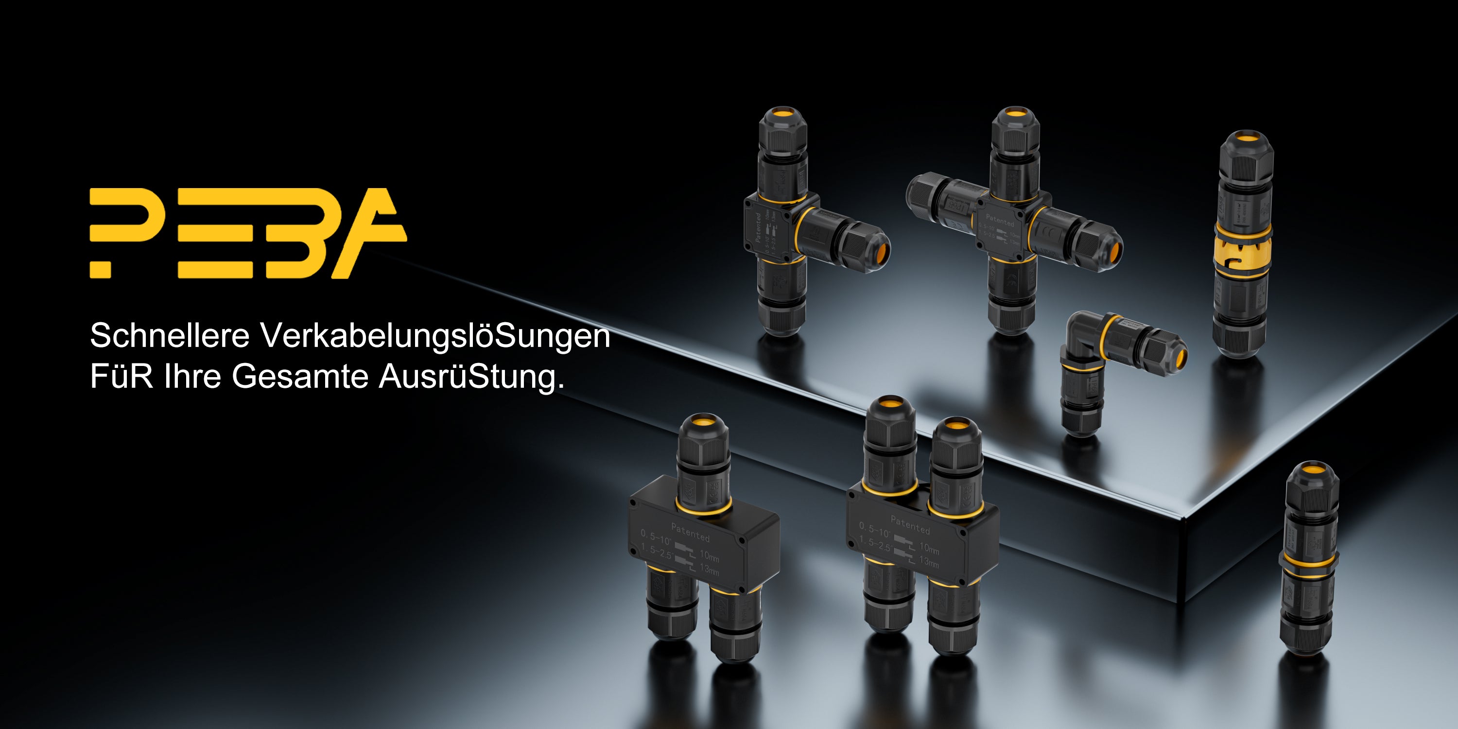 Boîte de jonction de câble étanche PEBA® IP68, connecteur de câble extérieur à 3 voies, connecteur de câble, boîte de jonction de câble étanche, boîtes de jonction, boîtes de jonction, connexion de câble pour diamètre de câble Ø4-14mm, noir