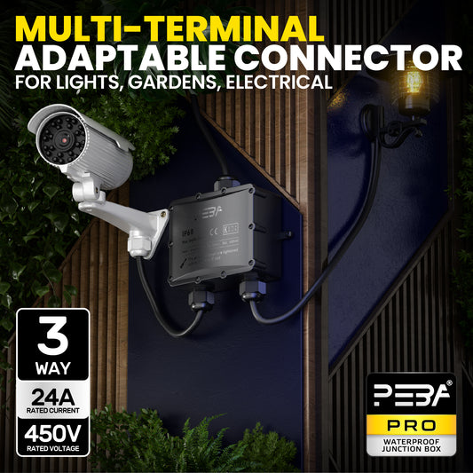 PEBA Wasserdicht Abzweigdose Erdkabel Kabelverbinder IP68 Verteilerdose steckdose aussen verteiler 4 mm-14 mm kabel für außen garten outdoor wasserdichte verbinder box 3-Wege steckdosen Schwarz