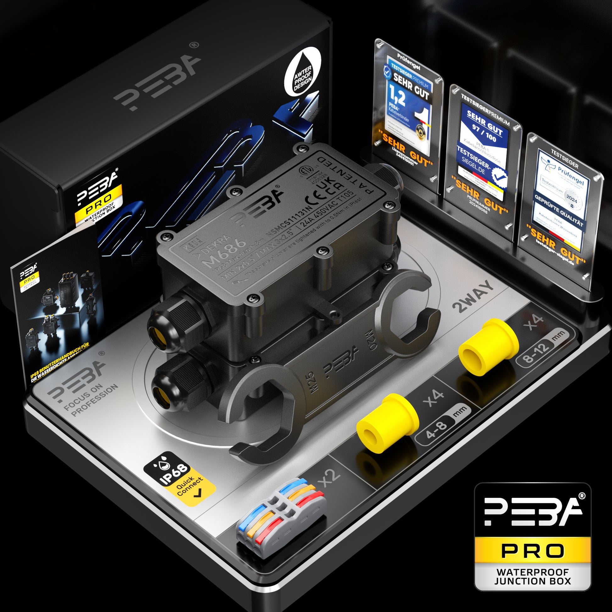 PEBA® Abzweigdose,Erdkabel Klemmdose Verbindungsdose, 2 Wege Junction Box, IP68 Wasserdichte Verteilerdose, Kabelverbinder Aussen, Elektrischer Außenverteilerdose, Kabeldurchmesser Ø 4mm-12mm, schwarz(2 Stück)