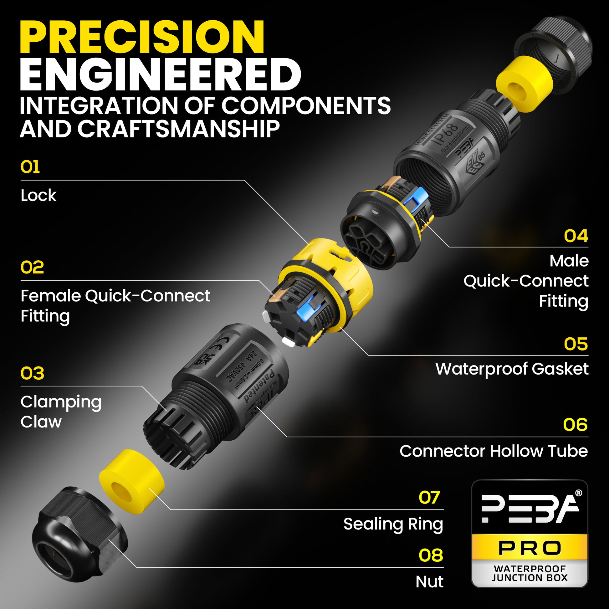 PEBA® Kabelverbinder Wasserdicht 5 polig IP68 Steckbarer Wasserdichte Kabelverbinder, Kabelschnellverbinder mit Stecker und Buchse für Ø4-14mm Kabeldurchmesser,Erdkabel Abzweigdose, Schwarz
