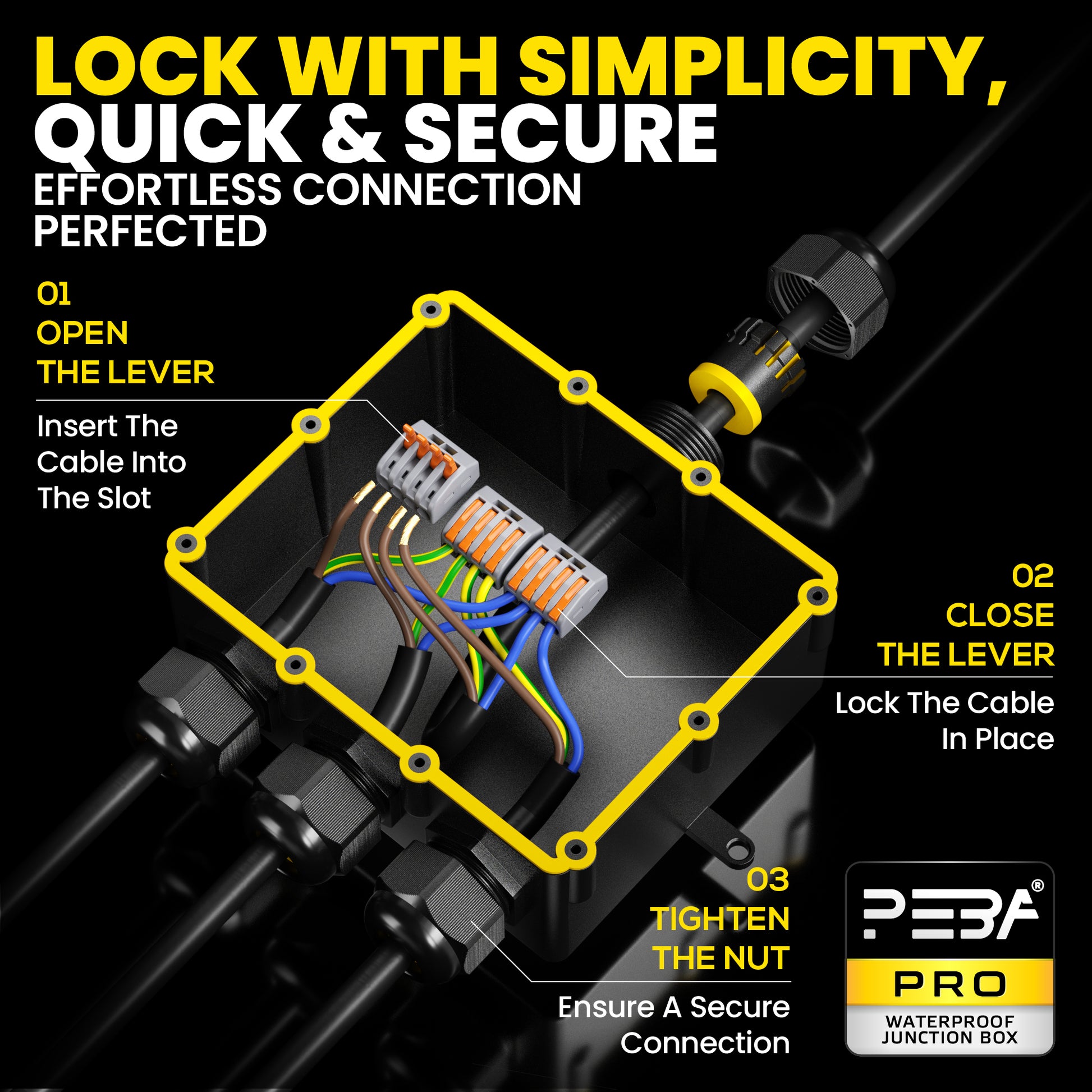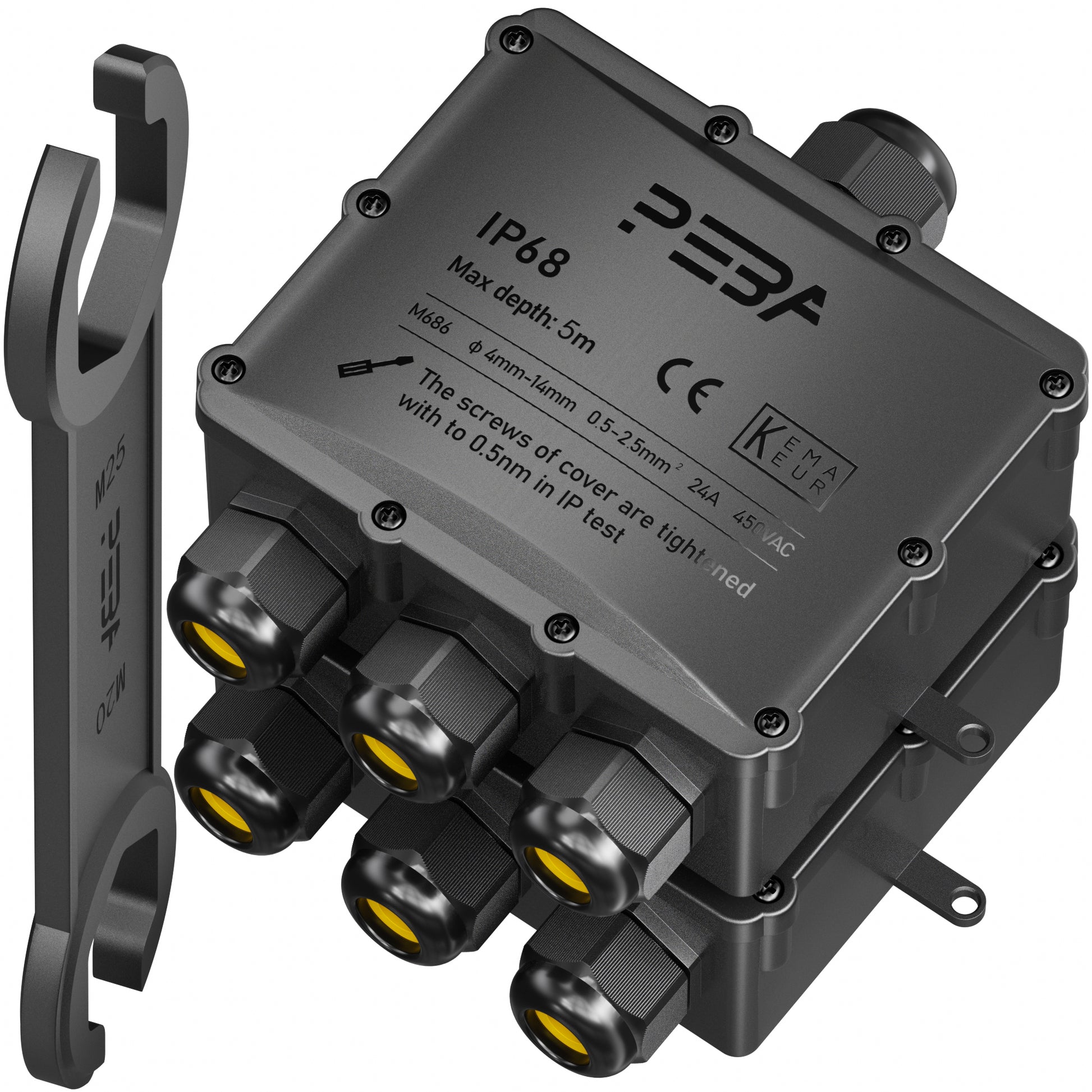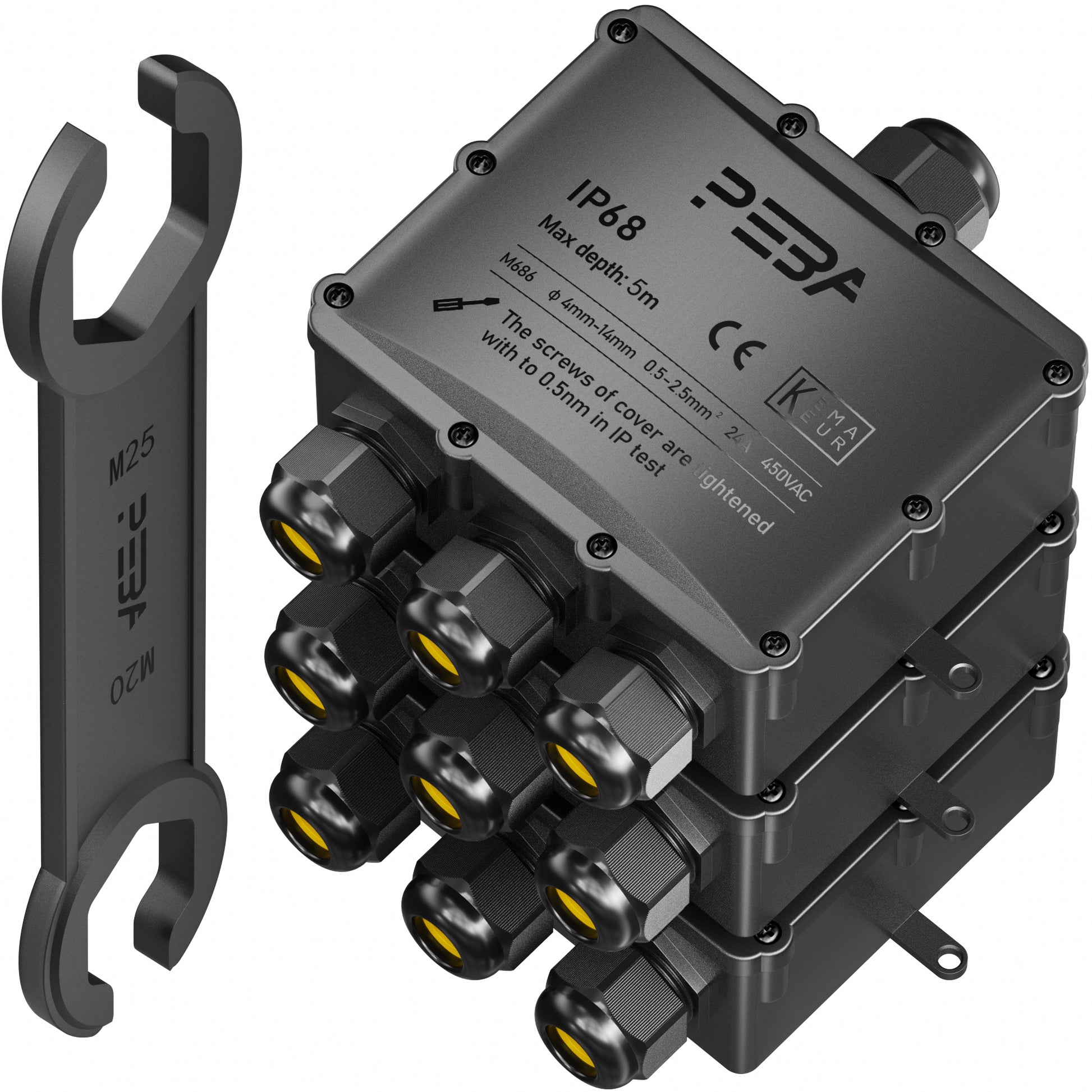 PEBA® Wasserdicht Abzweigdose Erdkabel Kabelverbinder IP68 Verteilerdose steckdose aussen verteiler Ø4mm-14mm kabel für garten outdoor verbinder box 4-Wege Schwarz