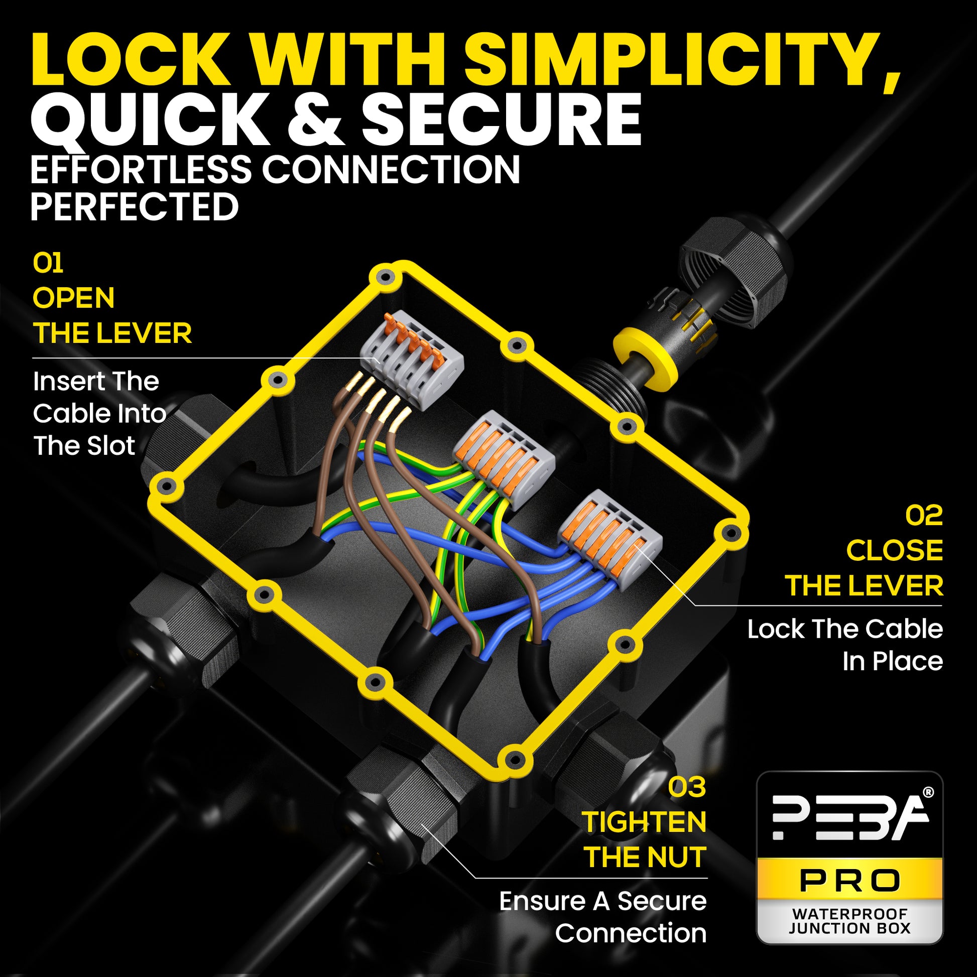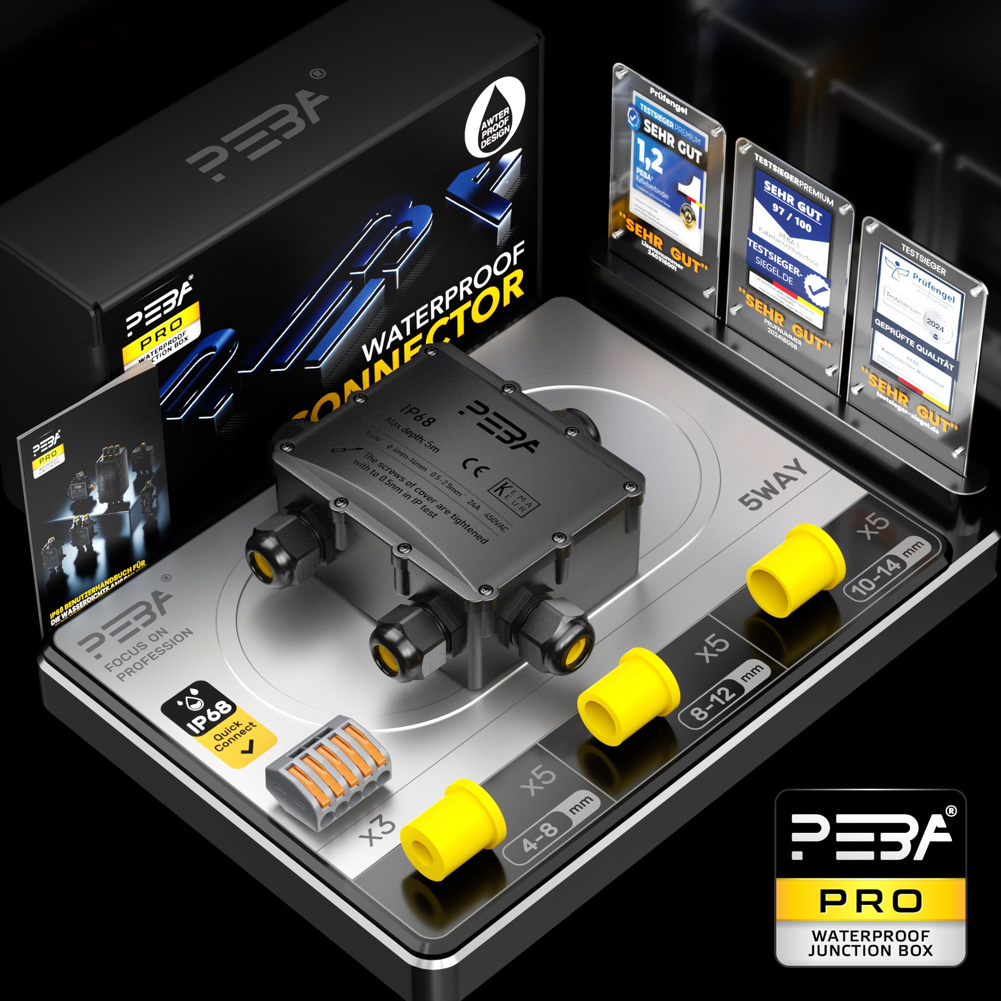 PEBA® Wasserdicht Abzweigdose Erdkabel Kabelverbinder IP68 Verteilerdose steckdose aussen verteiler Ø4mm-14mm kabel für garten outdoor verbinder box 5-Wege Schwarz
