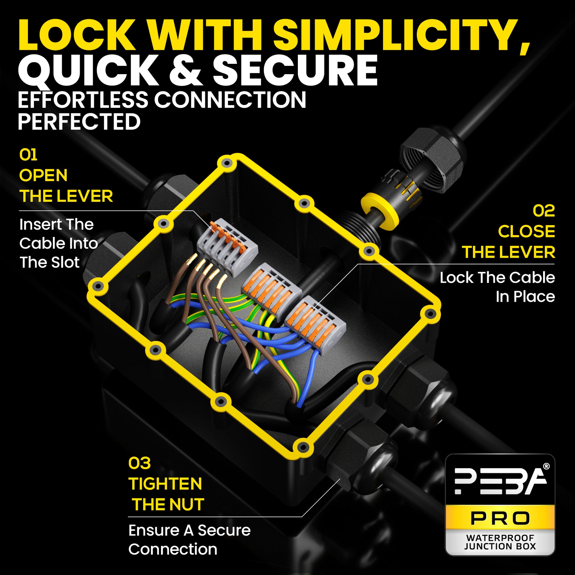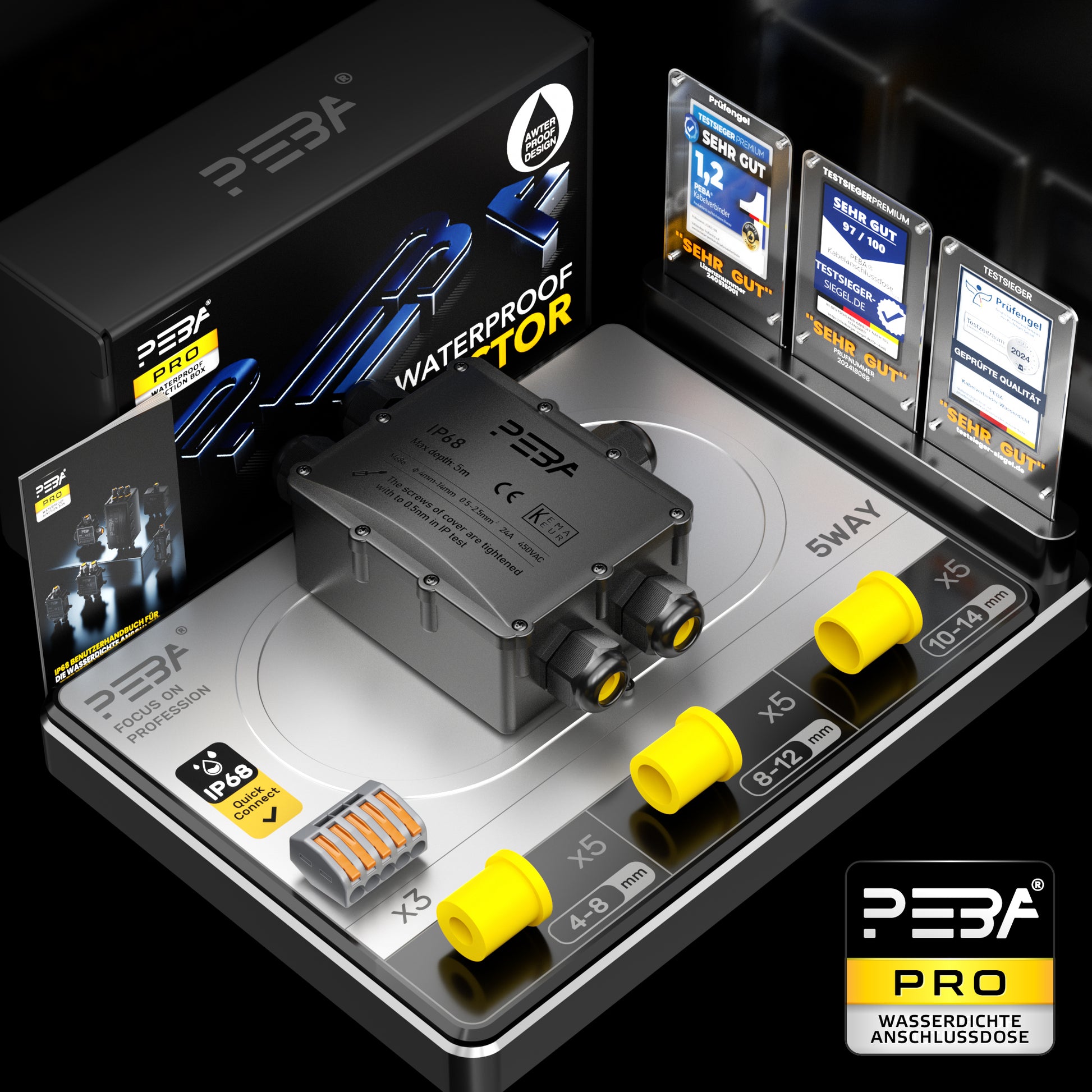 PEBA® Wasserdicht Abzweigdose Erdkabel Kabelverbinder IP68 Verteilerdose steckdose aussen verteiler Ø4mm-14mm kabel für garten outdoor verbinder box 5-Wege Schwarz