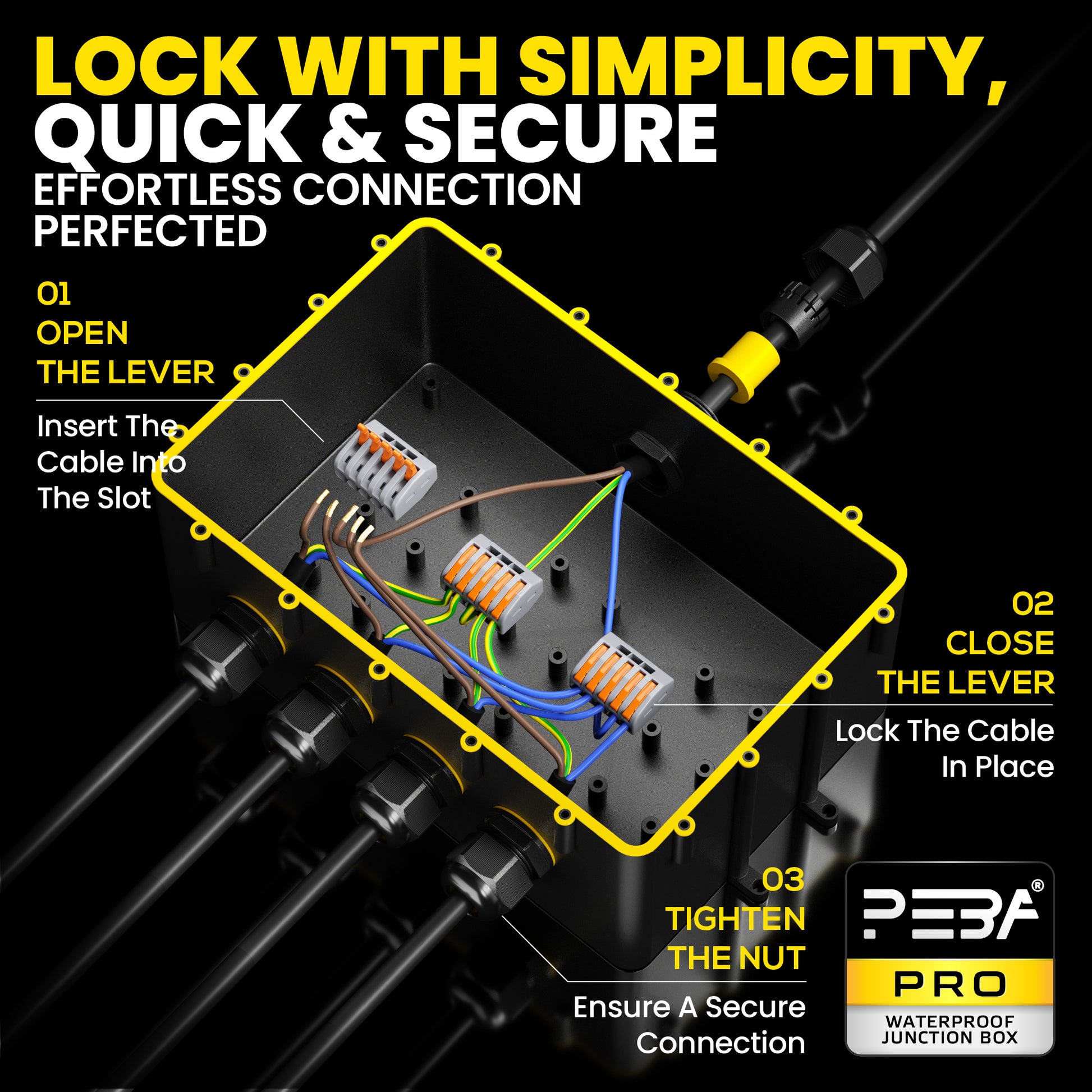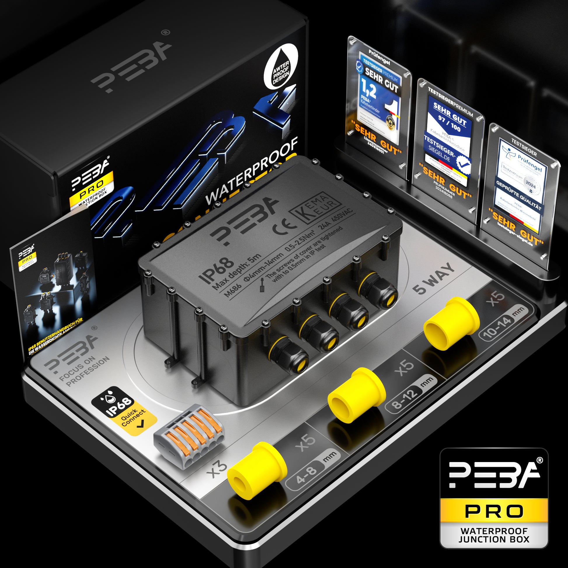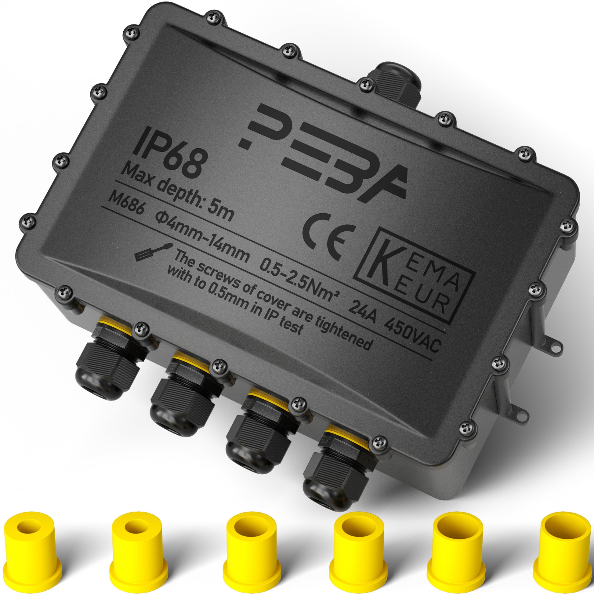 PEBA® Wasserdicht Abzweigdose Erdkabel Kabelverbinder IP68 Verteilerdose steckdose aussen verteiler Ø4mm-14mm kabel für garten outdoor verbinder box 5-Wege Schwarz