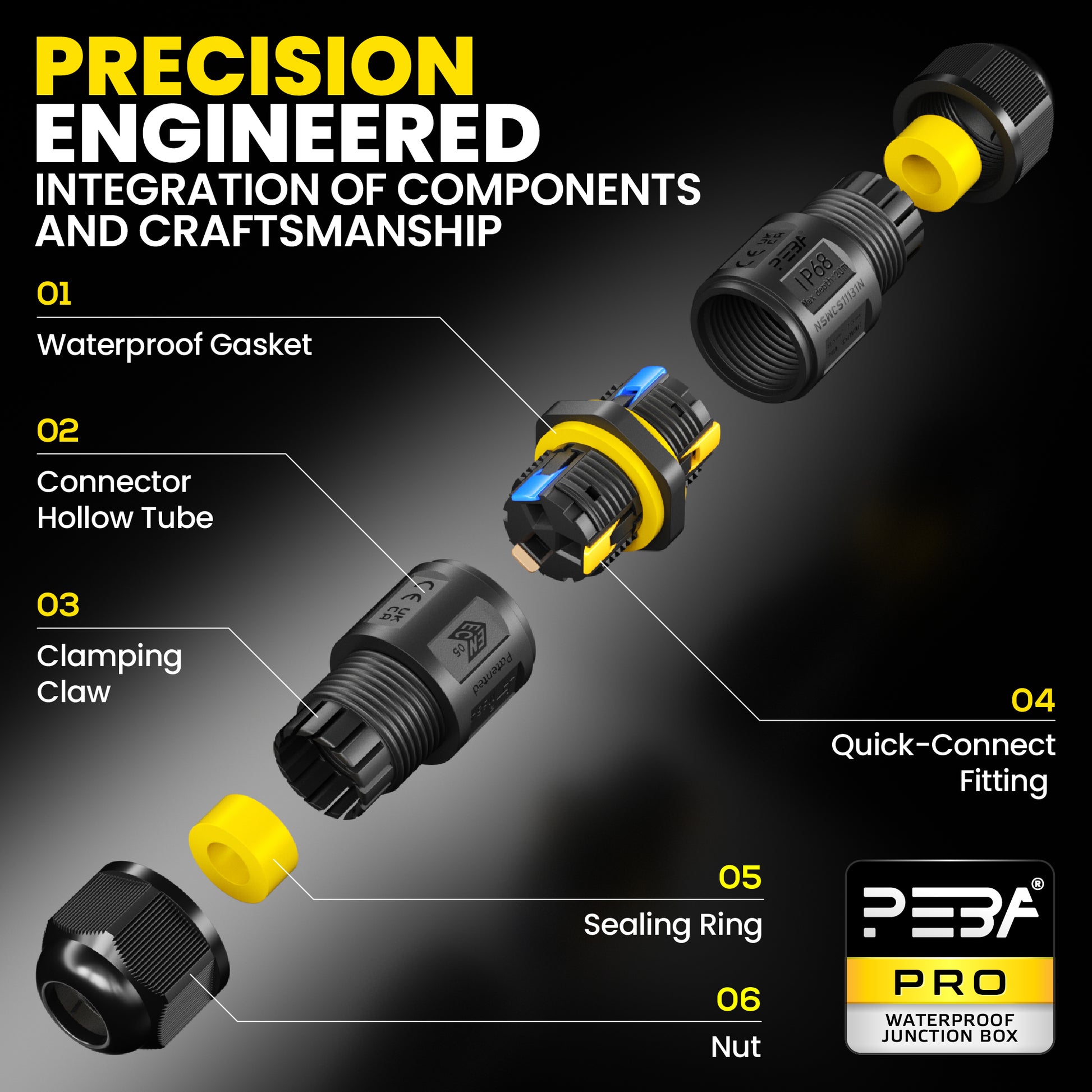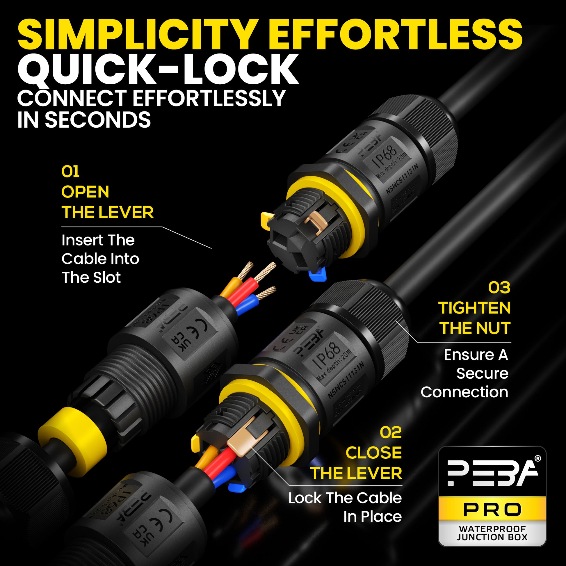 PEBA® Kabelverbinder Wasserdicht IP68 Verbindungsbox Verbindungsmuffe 3-polig für Ø4-12mm Kabeldurchmesser, Verteilerdose außen, 3-Leiter, Verbindungsklemme mit Hebel für Outdoor, Abzweigdose