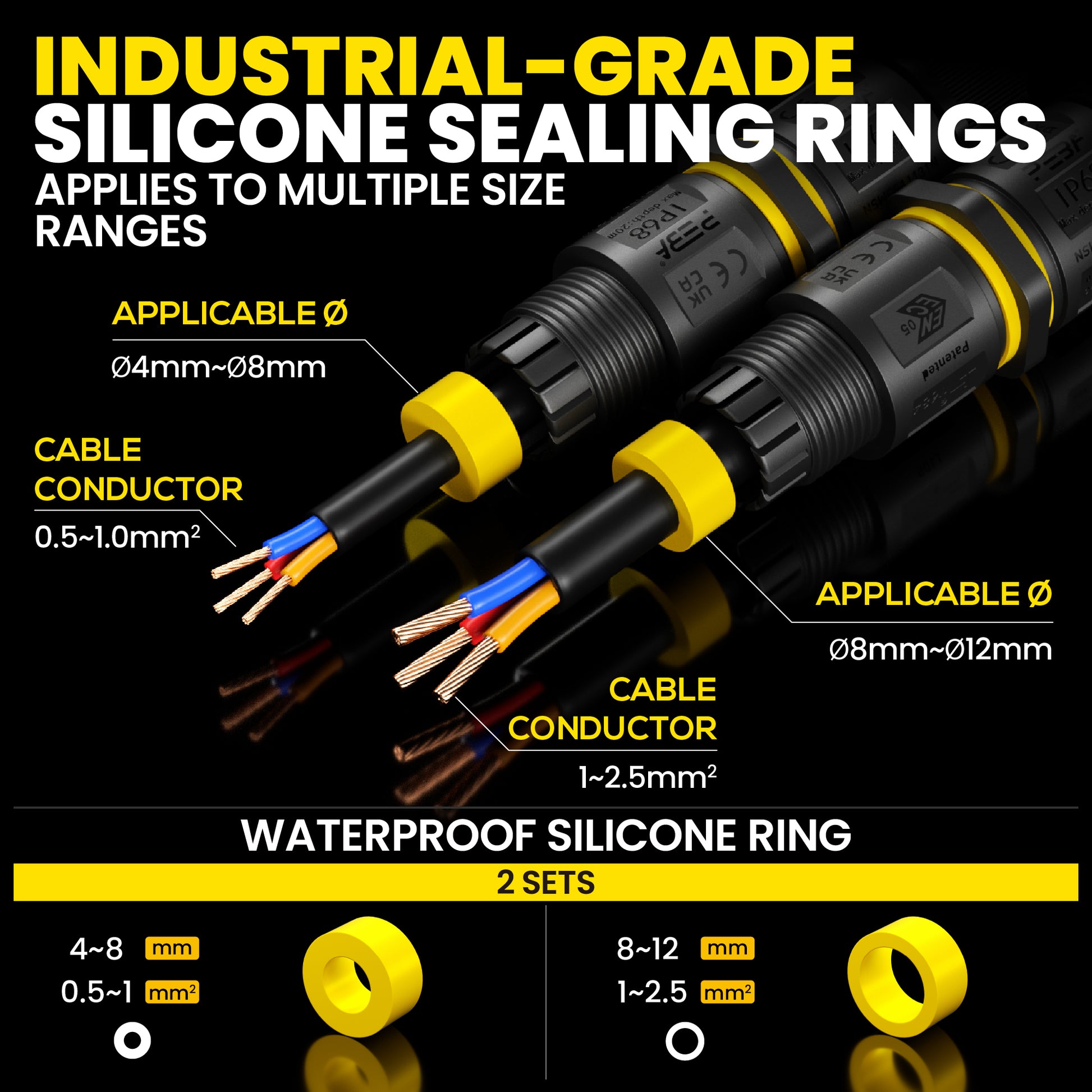 💦【Merkmale】3-Leiter Anschluss, Schneller Anschluss, Einfache und werkzeuglose Handhabung dank Hebel Bauweise.Kommen Sie mit 2 Sets versiegelter Silikagel-Pads unterschiedlicher Größe, Sie ist für Kabeldurchmesser von 4-8mm und 8-12mm geeignet. Sie kann eine bessere Wasserdichtigkeit für verschiedene Drähte erreichen.